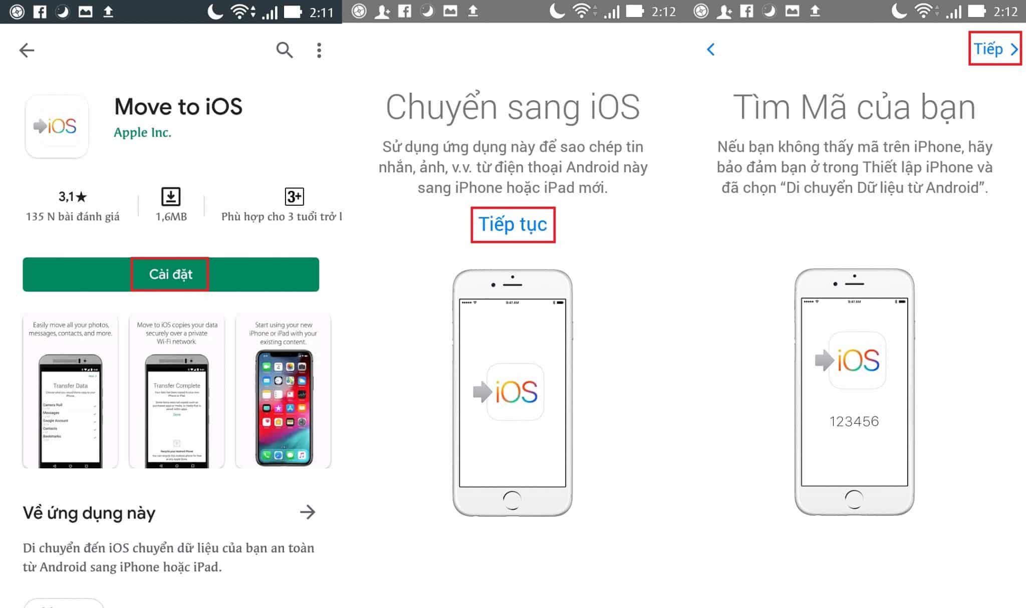 - Tải xuống Move to iOS cho thiết bị Android nhấn Tiếp tục > Tìm mã của bạn
