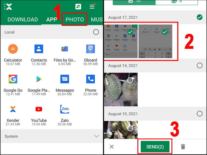 - Sau khi tải xuống và cài đặt Xender trên cả 2 thiết bị, mở Xender trên thiết bị Android chọn các dữ liệu muốn chuyển và nhấn Send (Gửi).