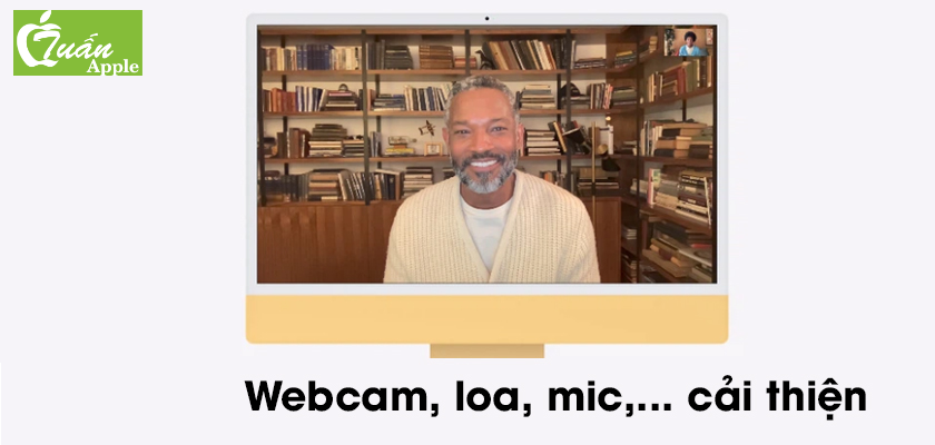 Ngoài những yếu tố trên thì webcam, loa, mic,… trên phiên bản mới nhất của iMac này cũng được cải thiện đáng kể. Webcam của máy có độ phân giải 1080p kết hợp với bộ xử lý hình ảnh trong con chip M1 mang đến hình ảnh chất lượng hơn, quay video ấn tượng hơn và dài tương phản động tốt hơn.