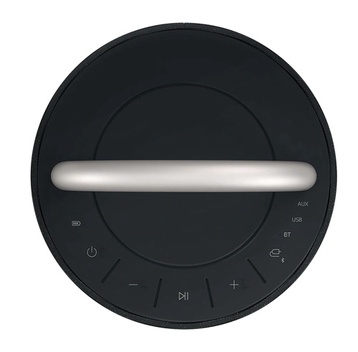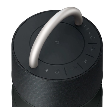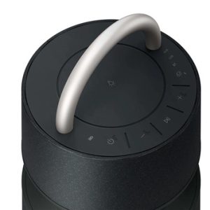 LG Xboom 360 RP4 sở hữu thiết kế khá độc lạ và dám chắc bạn chưa hề thấy bất kỳ mẫu nào có trên thị trường. Loa có hình dáng của một chiếc đèn lồng với tay xách sang trọng và phần giữa có không gian khoét có tác dụng phân tán sóng âm ra đa hướng.