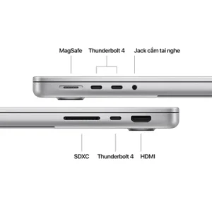 Màn hình 14 inch Liquid Retina XDR với công nghệ Mini LED mang đến trải nghiệm hình ảnh sắc nét với độ sáng SDR 1000 nits và HDR 1600 nits. Màn hình này đảm bảo hiển thị chính xác màu sắc, lý tưởng cho công việc thiết kế và chỉnh sửa hình ảnh chuyên nghiệp. Công nghệ chống chói nano-texture giúp người dùng thoải mái làm việc trong mọi điều kiện ánh sáng.