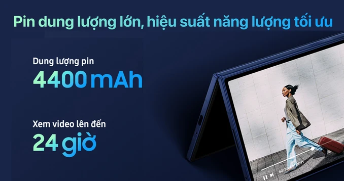 Samsung Galaxy Z Fold 7 với dung lượng pin 4.400mAh, kèm công nghệ tiết kiệm điện năng mDNle, đáp ứng nhu cầu sử dụng cả ngày với cường độ cao. Công nghệ sạc nhanh và khả năng quản lý năng lượng thông minh giúp người dùng yên tâm hơn khi làm việc và giải trí liên tục.