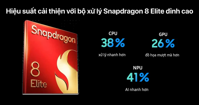 Samsung Galaxy Z Fold7 được trang bị Chip Snapdragon 8 Elite, tăng hiệu năng đến 45%, đảm bảo cho mọi tác vụ từ cơ bản đến nâng cao. Khả năng đa nhiệm – vốn là thế mạnh của dòng Z Fold – sẽ tiếp tục được cải tiến, cho phép mở nhiều ứng dụng cùng lúc mà vẫn mượt mà.