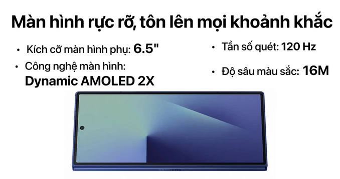 Màn hình phụ: Dynamic AMOLED 2X 6.0 inch FHD+, tỷ lệ màn hình khi gập 21:9, tăng 19% độ chuẩn xác so với Z Fold6.
