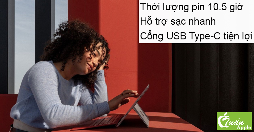 Thời lượng pin lên tới 10.5 giờ, hỗ trợ sạc nhanh và cổng USB Type-C tiện lợi