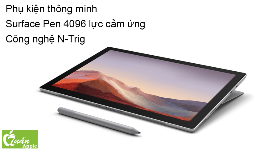Đi kèm với Surface Pro 7 chính là bút Surface Pen thông minh. Được hỗ trợ đến 4096 lực cảm ứng và độ trễ 21ms, đây chính là món phụ kiện hoàn hảo giúp bạn ghi chép, chỉnh sửa hình ảnh, vẽ tranh,… vô cùng tiện lợi. Nhờ công nghệ N-Trig được trang bị cho Surface Pen sẽ giúp mang đến những nét vẽ tuyệt vời, sắc nét cùng với những hiệu ứng độc đáo.
