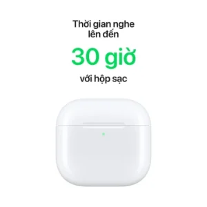 AirPods 4 với thiết kế hộp sạc nhỏ gọn hơn đến 10% tuy nhiên sẽ không làm ảnh hưởng đến thời gian sử dụng. Cụ thể, tai nghe có thể mang lại đến 5 giờ sử dụng trên tai nghe và 30 giờ nếu sử dụng kết hợp với hộp sạc. Cùng với đó là khả năng sạc pin qua cổng USB-C trên Airpod 4 tiện lợi cũng như khả năng sạc không dây với sạc Qi.